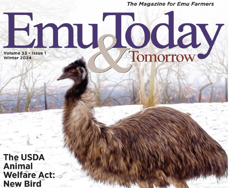 The Winter 2024 Issue of ET&T highlights include “The USDA Animal Welfare Act: New Bird Rules and Licenses.” “Keeping Emu Production Records,” “First Egg of the Season,” “Easy Emu Recipes,” photos from the 2023 AEA Convention, “Public Speaking and Presentations,” and “Meet the New AEA Board of Directors.”