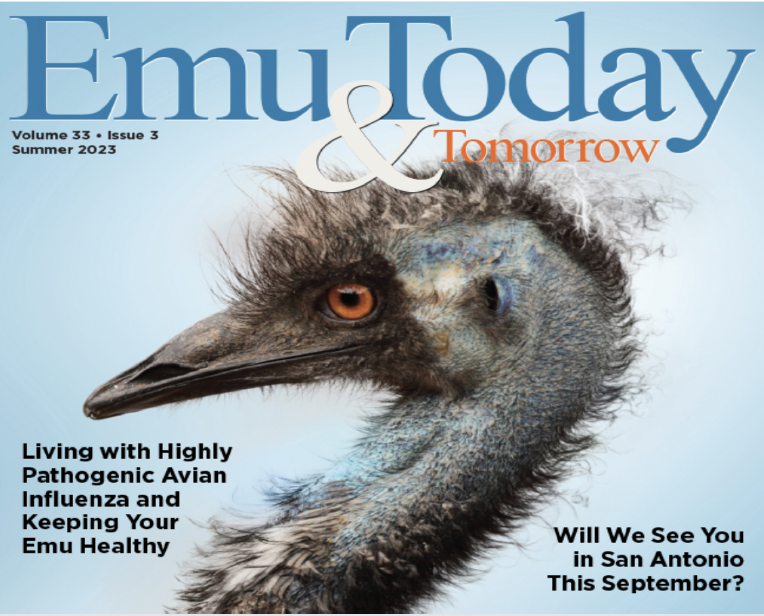 The Summer 2023 Issue of ET&T highlights include “Emu Facts—There’s a Lot to Learn,” “Living with Highly Pathogenic Avian Influenza and Keeping Your Emu Healthy,” “Emu Jerky Recipes,” “Emu Farmer’s Dedication Proves They are Here to Stay,” and American Emu Association “Certified Oil Program Frequently Asked Questions” and “Will We See You in San Antonio This September?” The 2023 AEA Convention registration form is also included in this edition.