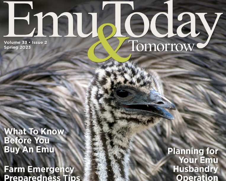 The Spring 2023 Issue of ET&T highlights include articles about “Ideas on How to Load and Handle Emus When Transporting,” “Emu Can Provide Nutrition as a Backyard Livestock,” “Planning for Your Emu Husbandry Operation,” “Emu Recipes for Dinner (or Lunch),” “Farm Emergency Preparedness Tips,” and “National Emu Week (NEW) Event Ideas.”