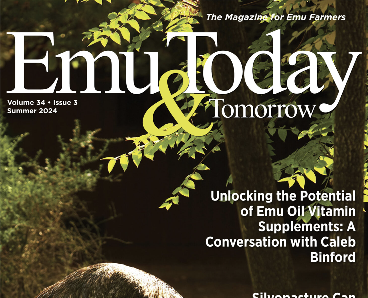 The Summer 2024 Issue of ET&T highlights include “Gypsy Shoals Farm,” “Unlocking the Potential of Emu Oil Vitamin Supplements,” “Emu House for Resource and Education,” “How Silvopasture Can Increase Emu Farmer Profit,” and “Heart-Healthy Tamale Recipe and Salsa.”